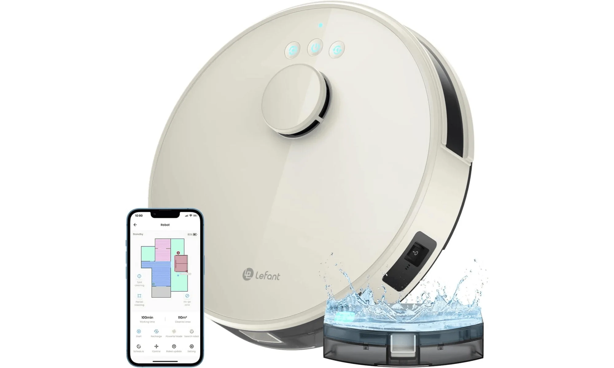 Via l’application Lefant, Google Assistant ou Alexa. Vous pouvez programmer des nettoyages, ajuster les modes et suivre son chemin en direct.