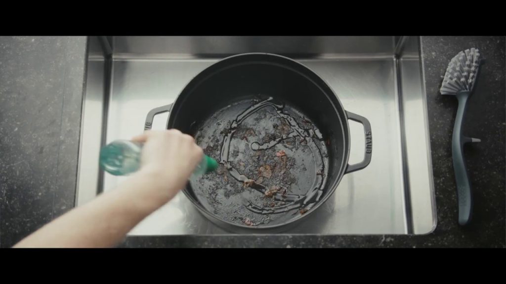Un mélange d’eau chaude et de savon doux est la solution la plus simple pour nettoyer une poêle ou une casserole en fonte noire utilisée au quotidien. Appliquez l’eau savonneuse avec une éponge douce, puis rincez abondamment. Cela permet de retirer les graisses de cuisson tout en préservant la patine protectrice.