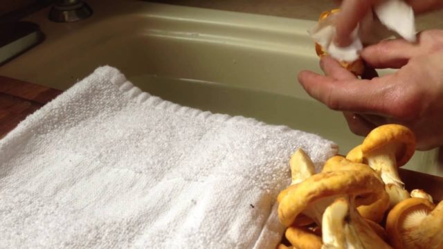 Un chiffon propre légèrement humidifié retire la poussière et les traces de terre. Évitez de trop mouiller le tissu, car les champignons absorbent vite l’humidité. Cette méthode convient aux chanterelles encore fermes et peu sales.