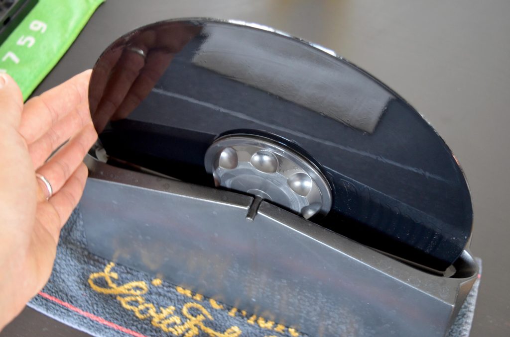 Une machine à vinyles, telle que la Pro-Ject VC-S3 ou la Okki Nokki, assure un nettoyage en profondeur. Le disque tourne pendant qu’une brosse diffuse la solution nettoyante et qu’un système d’aspiration retire les résidus. Le résultat est impeccable, sans trace ni poussière.
