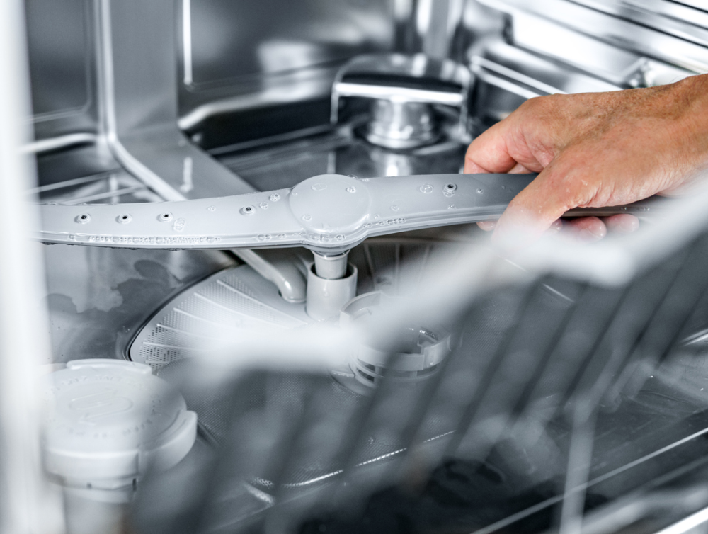 Les bras de lavage se bouchent souvent avec du calcaire ou des particules alimentaires. Retirez-les si possible, passez-les sous l’eau et utilisez un cure-dent ou une aiguille pour déboucher les trous. Cela améliore la circulation de l’eau.