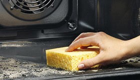 Après le refroidissement, un simple coup d’éponge humide permet de retrouver un four propre et sans odeur.