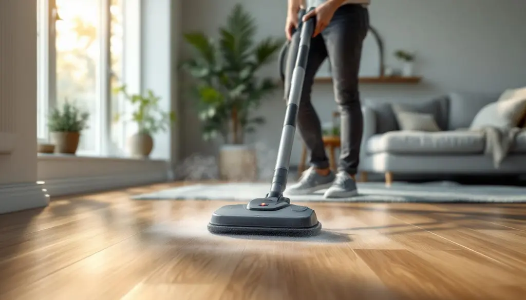 Commencez toujours par enlever la poussière et les saletés. Utilisez un balai microfibre ou un aspirateur muni d’une brosse spéciale parquet. Cela évite les micro-rayures et garde la surface lisse. Passez-le chaque jour ou tous les deux jours selon le passage.